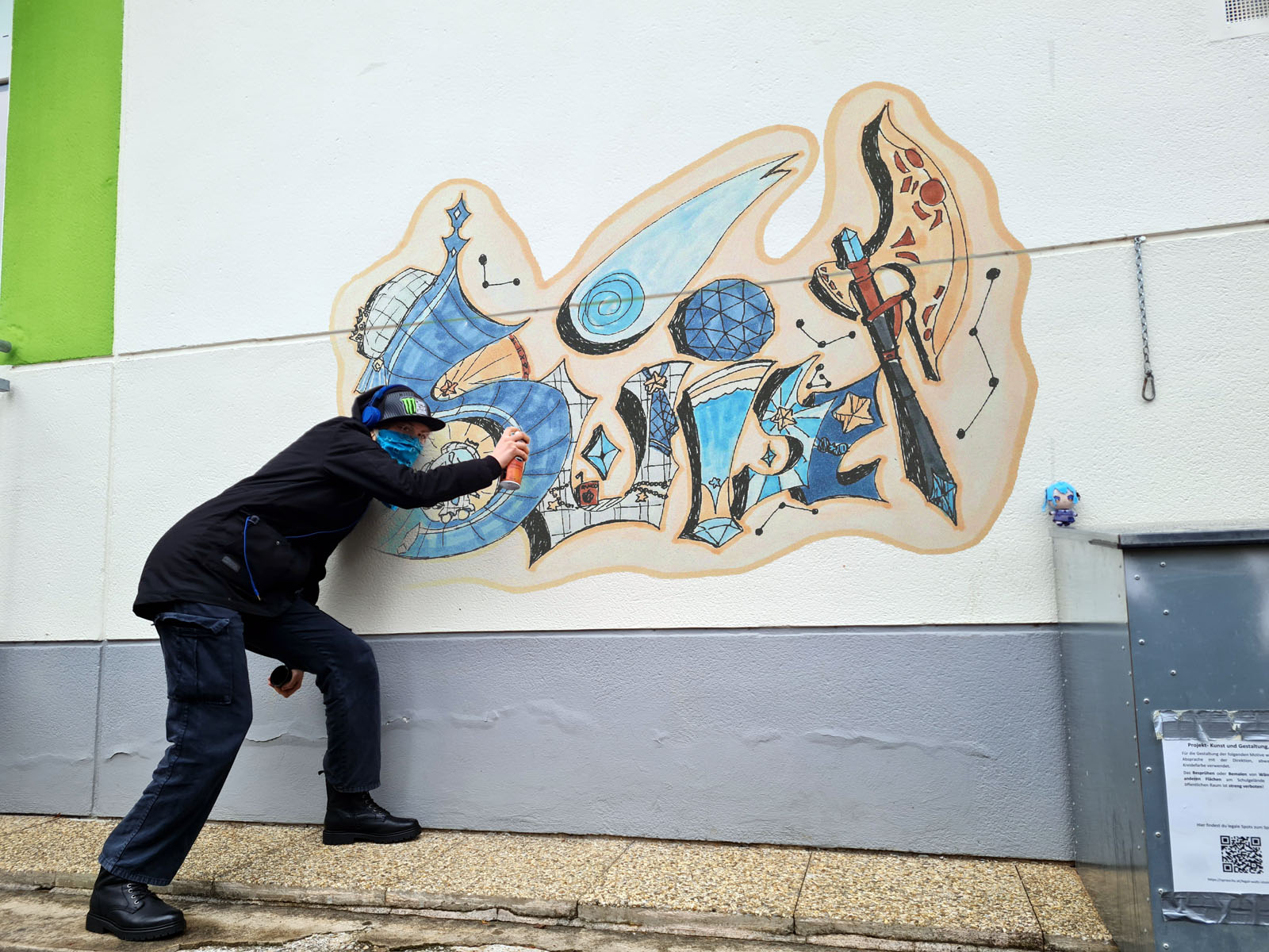 Die Schüler:innen der 7li befassten sich im Wintersemester 2025 im Fach Kunst und Gestaltung mit dem Thema Graffiti. Dabei entwarfen sie ihren persönlichen Graffiti Schriftzug zunächst analog mit Papier und Stift. Anschließend wurden gemeinsam Fotos am Schulgelände gemacht, die Entwürfe digitalisiert und mittels Photoshop Fotomontagen erstellt.